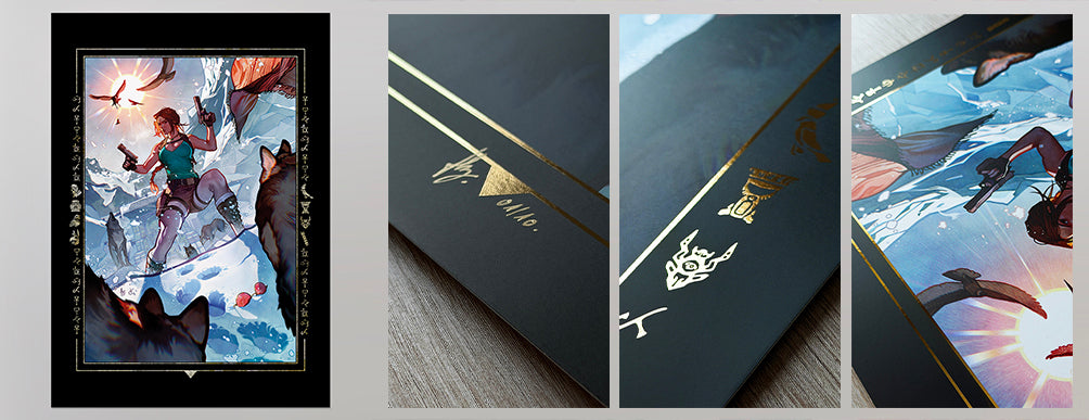 Pour célébrer le 30ème anniversaire de notre célèbre archéologue, j'ai mis tout mon cœur dans cette édition spéciale ! Le marquage à chaud – foil – met parfaitement en valeur les artefacts et les hiéroglyphes qui encadrent l'illustration, et le pelliculage mat offre un toucher doux fabuleux.
